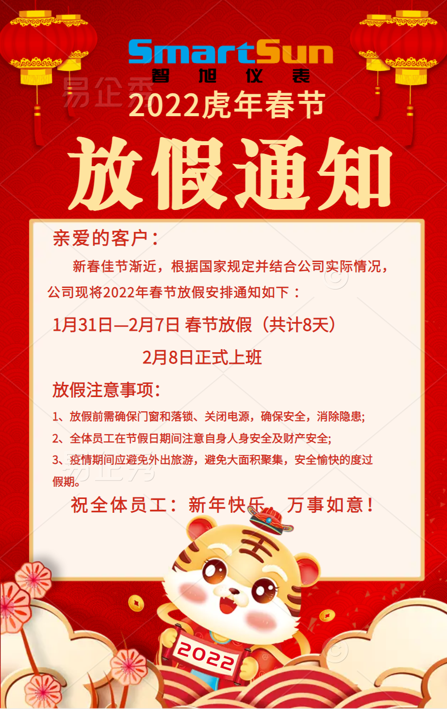 2022年春節(jié)假期放假通知發(fā)布時間:2022年01月28日 -